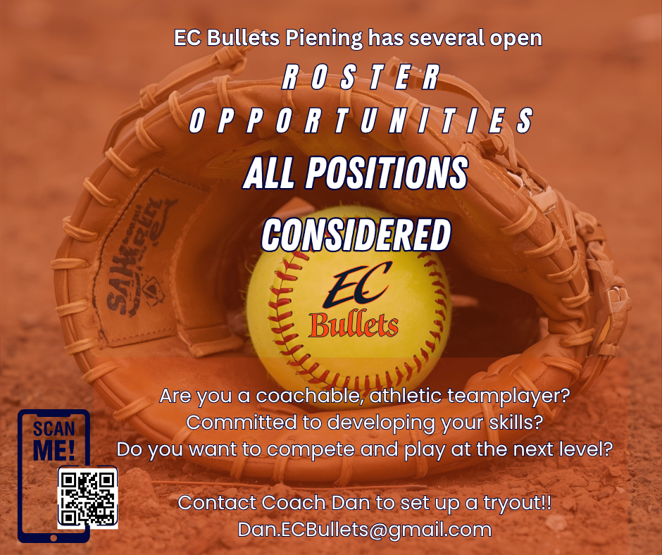 EC Bullets-Piening is always looking to add depth to our 10U, 12U, 14U,16U and 18U rosters.